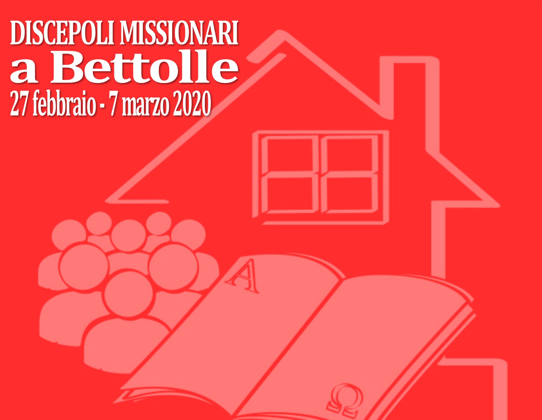Se sei battezzato e hai incontrato l’amore di Dio in Gesù sei un Discepolo Missionario (DM). Se vuoi fare una esperienza di missione sono aperte le iscrizioni per la Visita dei discepoli missionari alle famiglie di Bettolle: dai la tua disponibilità. Si tratta di andare insieme ad un altro DM a portare nelle case l'invito del Vescovo Stefano (un piccolo stampato) per la Visita Pastorale una sera della settimana, dal 27 febbraio - 7 marzo 2020, per andare ad annunciare il vangelo nelle famiglie e preparare la Visita Pstorale del Vescovo al popolo di Bettolle dall'8 al 15 marzo 2020.