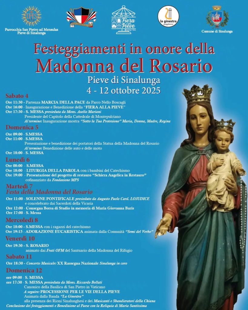 Prenderanno il via sabato prossimo. 4 ottobre 2025, i festeggiamenti in onore della Madonna del Rosario promossi dalla parrocchia San Pietro ad Mensulas alla Pieve di Sinalunga.